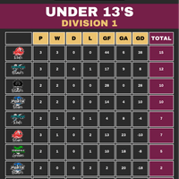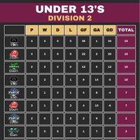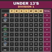 UNDER 13'S LEAGUE TABLES